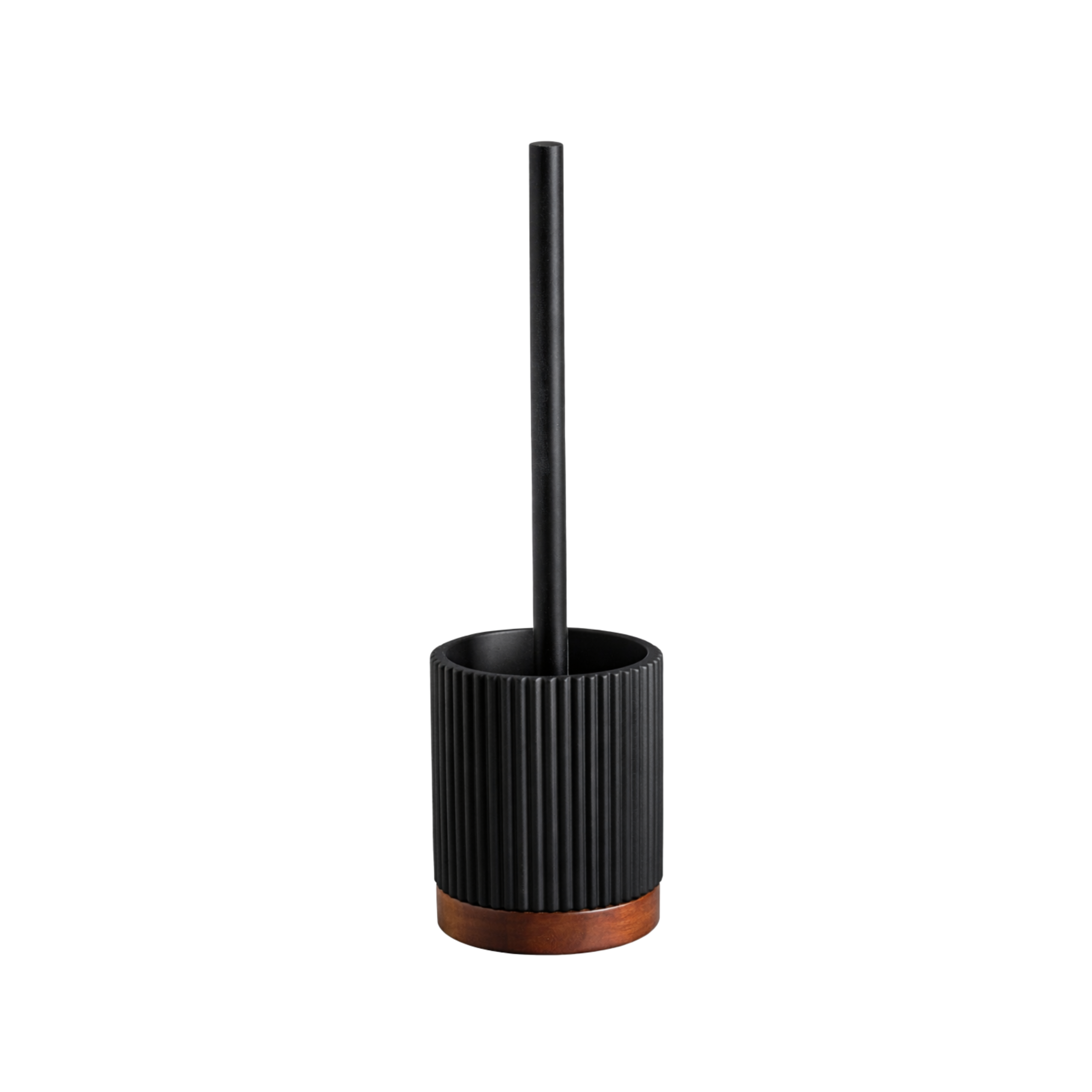Escobilla de poliresina negra con detalles en madera. Funcional y de estética moderna.