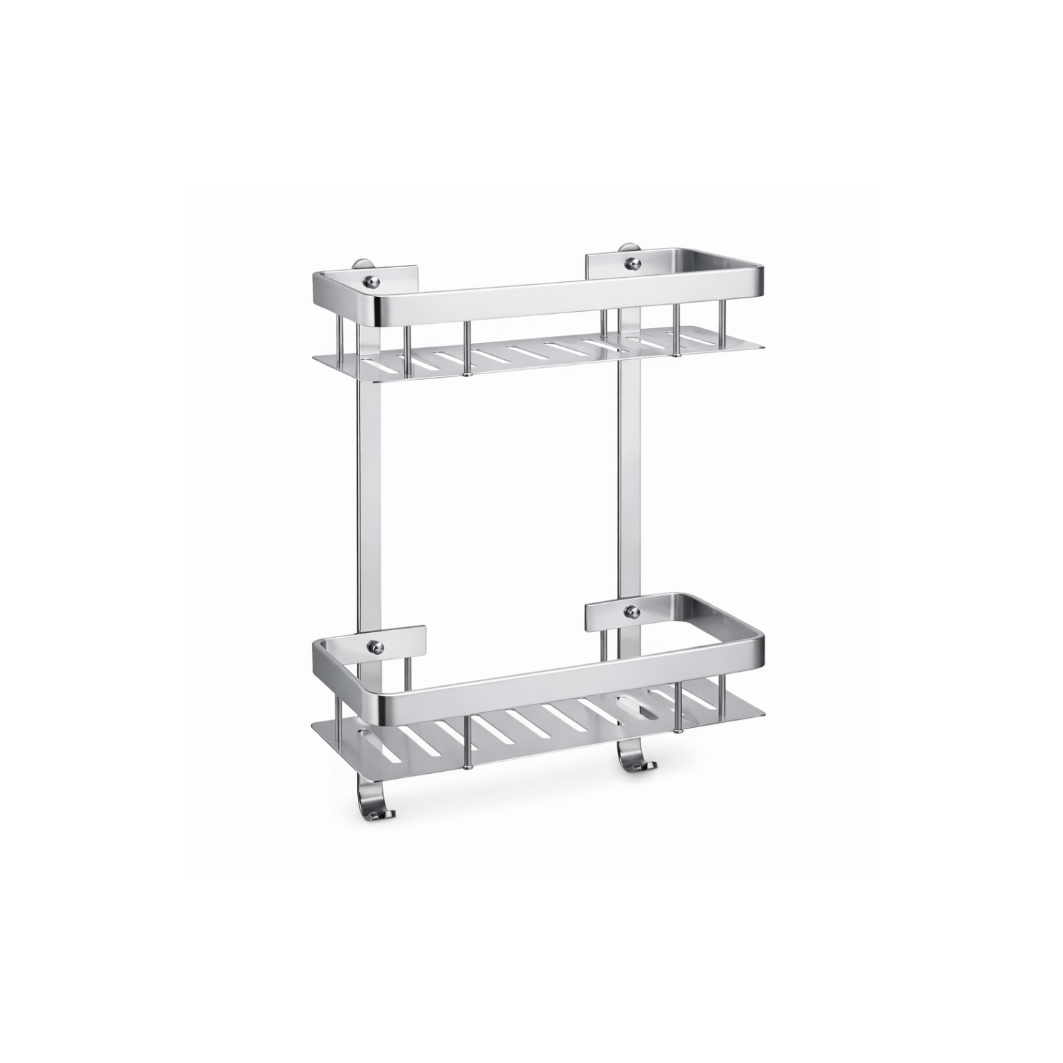 Estantería de aluminio doble para baño. Resistente a la humedad, funcional y de diseño liviano.